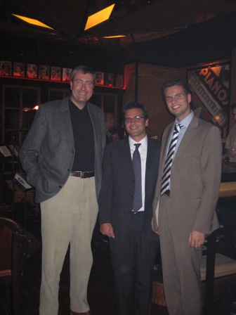 13. Oktober 2004 Ein glücklicher Zufall hat schon nach wenigen Wochen zugeschlagen: Gerald hat einen neuen Kunden in Cincinnati. Mehr als nur Grund genug so feiern! Im Steakhouse - Downtown. Ich war beeindruckt vom Essen (keine Plastikteller und Gabeln und ein richtiger Kellner!). Jared war eher beeindruckt von Geralds Größe :) |
